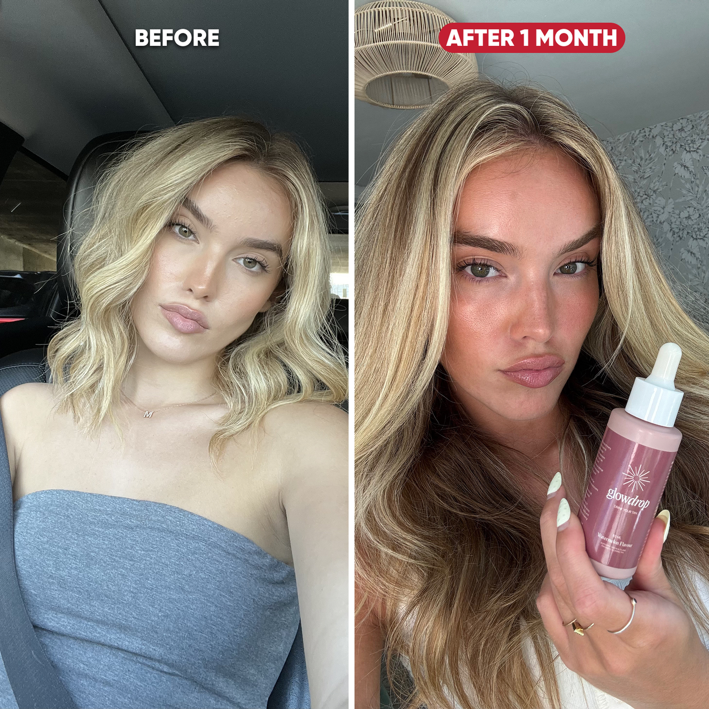 GlowDrop works from within, enhancing melanin production thanks to powerful ingredients like carotenoids and L-Tyrosine, which work in sync with your body to build a natural, healthy tan.