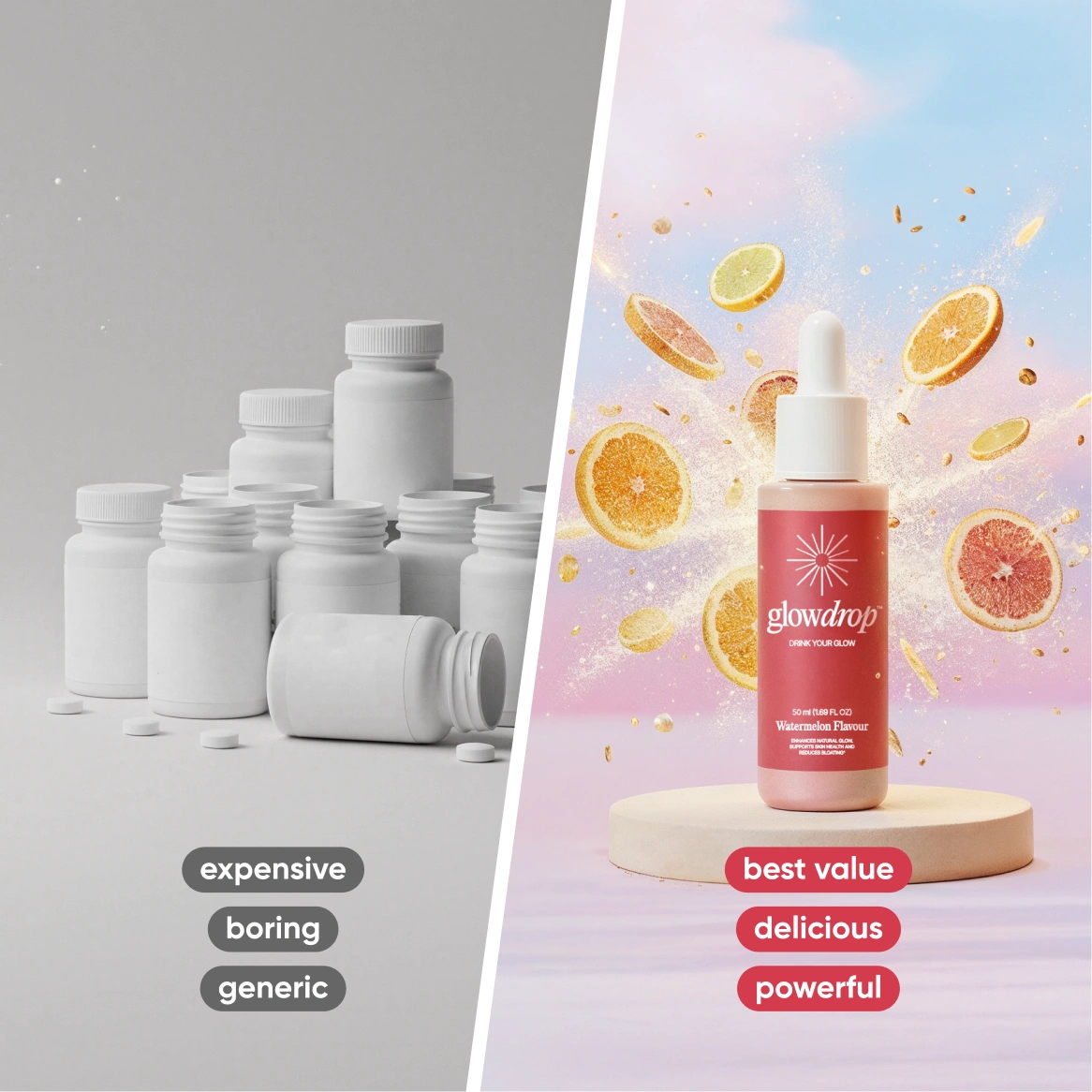 Most people spend over $200 a month on generic supplements, yet their skin still looks tired. GlowDrop gives you one simple routine to start your day. It's simpler and more delicious!