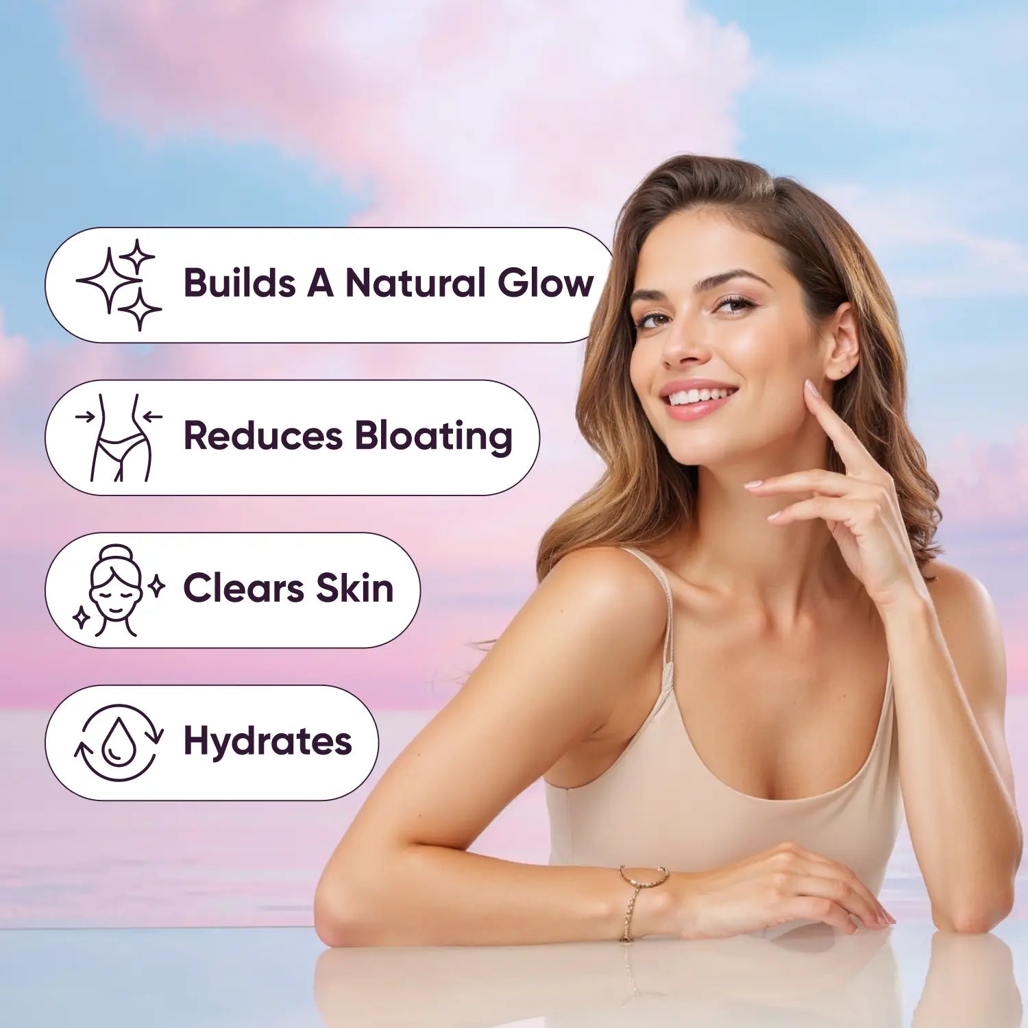 Just mix it in your drink, sip, and glow. No UV rays. No streaks. Just effortless, natural-looking color.
